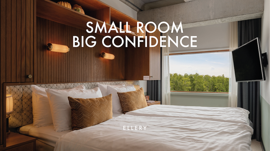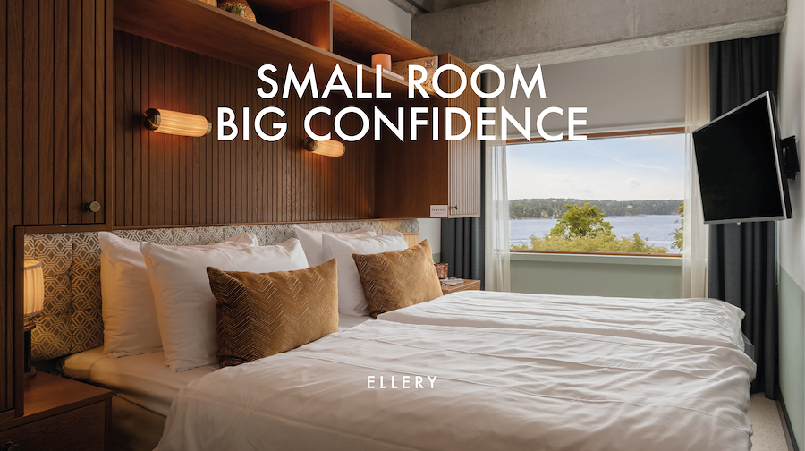 Våra 14 kvadratmeter rum Petite Mini är Ellerys mest intima. Vi tänker att storleken faktiskt inte spelar någon roll, för när du ser ditt ombonade, ljusa lilla krypin med generösa fönster och utsikt över det grönskade Lidingö, nära alla platser du vill hänga, så är kvadratmeterna det sista du kommer att tänka på. Våra Queen-size sängar är 180 x 200 cm.
